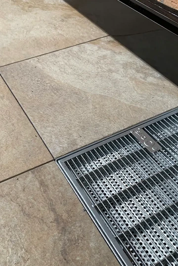 Und weil Wasser der größte Feind von Bauteilen ist, legen wir besonderen Wert auf funktionierende Entwässerung. Wir integrieren Abläufe, Rinnen und Gefälle so, dass kein Wasser stehen bleibt.